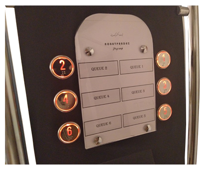 نمایشگر مرکزی می تواند بر اساس فضای سالن انتظار مشتریان از 17 تا 24 اینچ و یا یا بالاتر انتخاب شود. از محاسن اجرای این روش عبارتند از