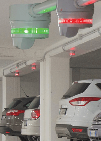 6. سنسورهای علامت دهنده : سنسورهای اولتراسونیک برای تشخیص خودرو در محل پارک ساخته شده که فضای خالی را با رنگ سبز و اشغال بودن فضای پارک را با رنگ قرمز نشان می دهد. این نوع سنسورها برای پارکینگ های بزرگ بسیار کمک کننده می باشد.